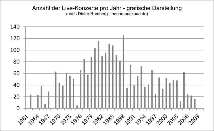 Der weltweite ErfolgWährend der in Deutschland so erfolgreichen Jahre 1961 bis 1963 entwickelte sich Nana Mouskouris Karriere gleichzeitig in mehrerenLändern. Ein Baustein ihres Repertoires, das immer internationaler wurde, blieben die "Weißen Rosen aus Athen". Es entstandenpassende Texte in Französisch, Englisch, Italienisch und Spanisch (?).Neben den vielen Tonträgern, die ihre Lieder transportierten und fünf große Sprachräume weltweit abdeckten, waren es vor allem ihreLive- Konzerte in aller Welt, die ihre unheimliche Beliebtheit und ihre millionenfache Anhängerschaft erklären. Mehr als 2500 Konzertein 50 Jahren auf der Bühne künden von einem unendlichen Fleiß. Diese große Anzahl von Konzerten, auf denen kaum einmal die"Weißen Rosen ..." fehlten, verbunden mit Fernsehshows, unzähligen Radio- und Fernsehauftritten in vielen Ländern, entwickelten sich die "Weißen Rosen aus Athen" zu einem Markenzeichen für Nana MouskouriIn ihren Abschlusskonzerten in Athen 2008 sang sie ein mehrsprachiges Medley der "Weißen Rosen ...".Nana Mouskouri interpretierte bisher über 1500 Titel, darunter auch so beeindruckende wie "Le ciel est noir", das Lied von Athen"Athina", "Hartino to fengaraki" und das neue Lied von Michael Kunze "Irgendwer sagt immer auf Wiedersehen".Für 2011 hat sie zwei neue CDs mit folkloristischen, griechischen Liedern und mit Duetten angekündigt.Neben der Bewunderung ihres Gesangs und ihrerKarriere ist es aber die Gesamtpersönlichkeit, dieihre Fans über viele Jahre so treu zu ihr stehen lässt.Nana Mouskouris Arbeit für Unicef und ihrEngagement für junge Künstler, ihre Kameradschaft-lichkeit zu ihren Musikerkolleginnen und -kollegen,ihre Ehrlichkeit, ihr Humor sowie ihr liebenswürdigerUmgang mit ihren Fans ist beispiellos. NanaMouskouri ist authentisch. Darum werden am 29.November 2011 ihre Anhänger aus aller Welt nachBerlin kommen - so u. a. aus den USA, Kanada,Chile und Neuseeland und natürlich aus vielen euro-päischen Ländern. Alle freuen sich auf diesesKonzert in der Philharmonie und wollen gemeinsammit ihr dieses besondere Fest feiern. Auch einigeFans feiern damit ihr persönliches 50jähriges Jubi-läum als Bewunderer ihrer Nana Mouskouri. Damitwird auch für sie der Abend zu einem ganz beson-deren und persönlichen Ereignis werden.